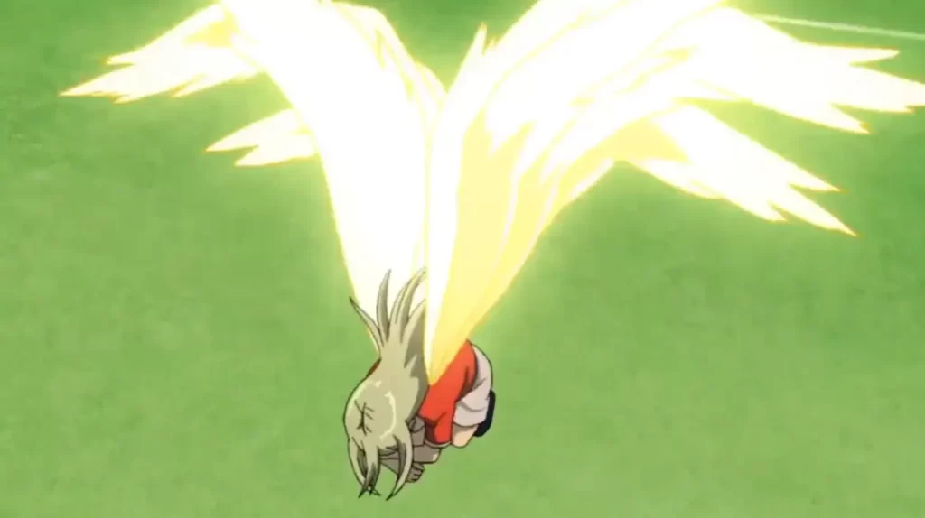 神の羽を生やし、雷を纏ったボールを上空から放つシュート技。