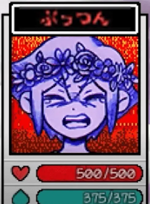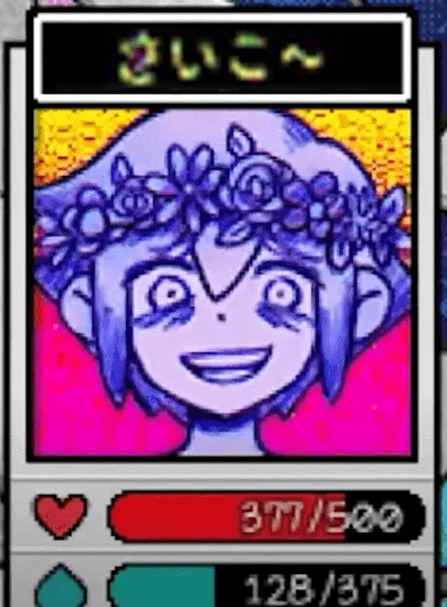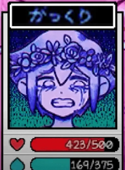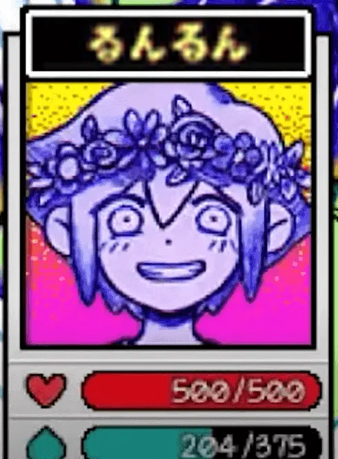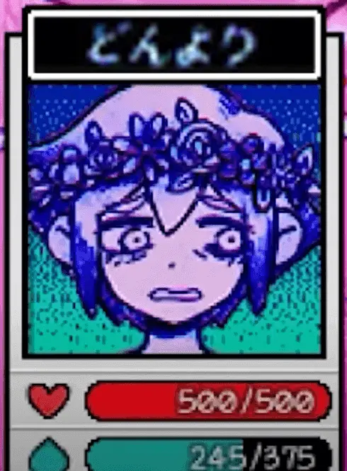 この『OMORI』というゲーム、戦闘はよくあるターン制なのだが特殊な「感情状態」というものがあり、それぞれの感情にはステータス変化と3すくみの相性が存在している。特徴なのが、この感情が変化しているときにキャラクターの表情も変化するのだ。個性豊かで見るだけでも楽しい。