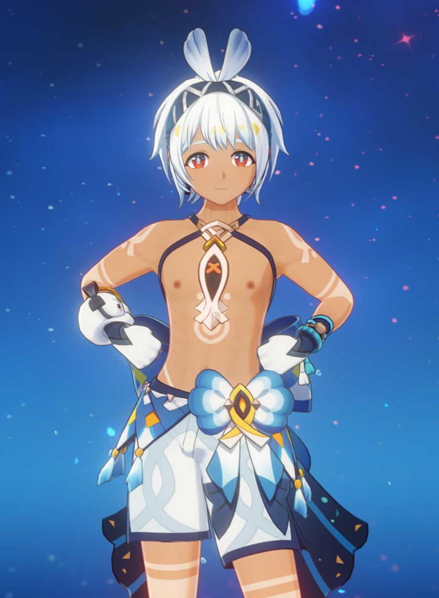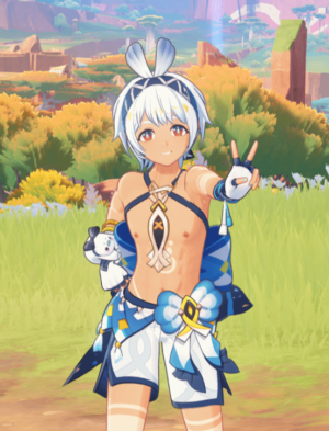 ちなみに、原神では男の子も乳○は隠される(描写されない)ので、普通は見れないです。