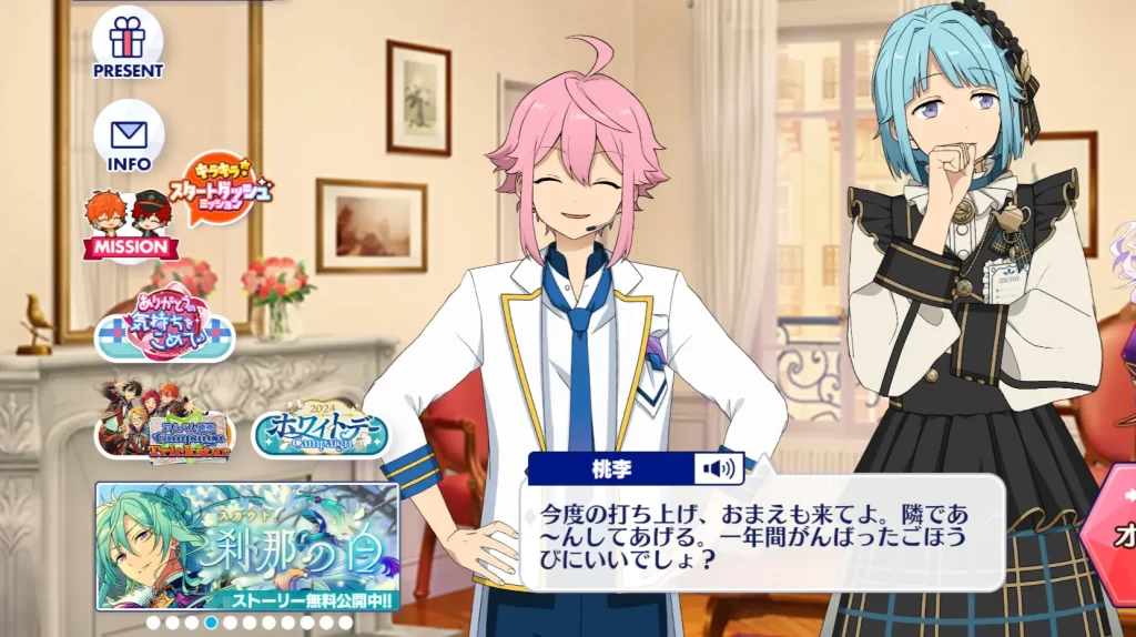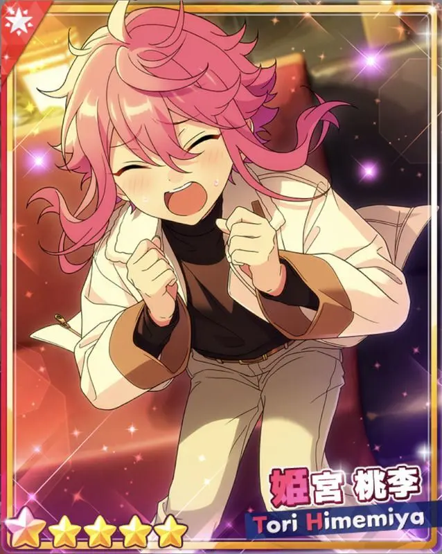 ゲーム『あんさんぶるスターズ』に登場する姫宮 桃李(ひめみや とおり)くん。学校では生徒会とテニス部に、アイドルグループでは「fine」に所属している男の子。
