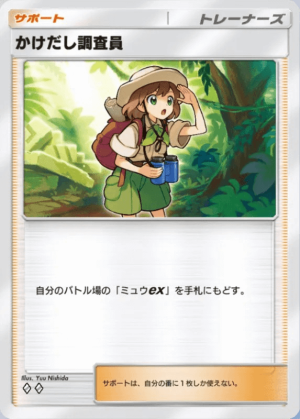 ミュウはジャングル地帯に生息していると過去に図鑑に記載されているため、その辺りを調査しているのが背景からもわかります。