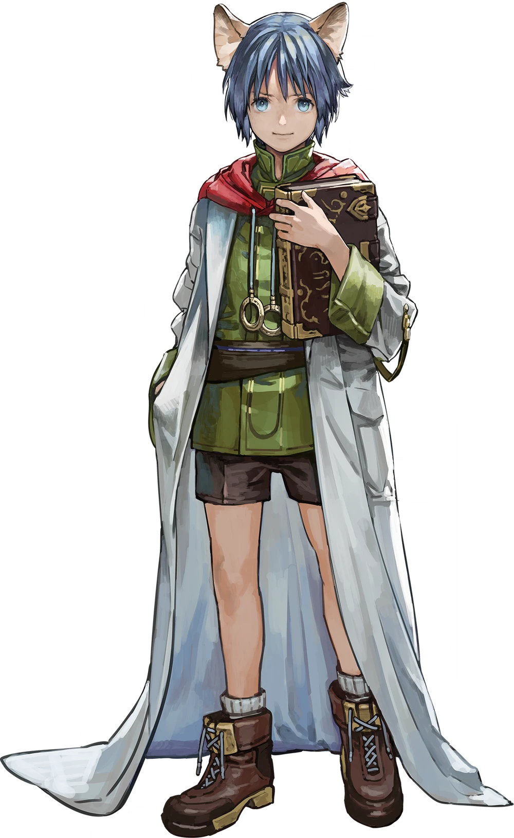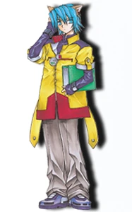 ラクール王国で両親と共に紋章兵器の研究に従事する天才少年で、幼いながらも頭脳明晰です。その才能から「レオン博士」と呼ばれることもありますが、当作品では年相応の子供らしさも持ち合わせています。年齢は12歳で、種族は猫を祖先とした亜人のフェルプール、猫耳が特徴的です。
