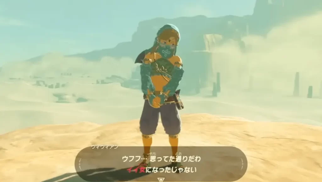 目的のためゲルドの街に入りたかったリンクだが、街の中は男子禁制。結果として女装をして潜入することとなる。女装姿だとバレずに潜入できるのだが、空から街に入ったり、樽に隠れて入ったり、街の中に入った後に人のいない場所で着替えても追い出されてしまう。なんで。