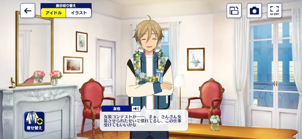 友也は自分自身の事をまともな人間だと思っているが、本当にその通りであり、あんスタ内においてかなりの常識人。真面目で頑張り屋だが、常識人であるが故に周りの人に振り回されやすい。「Ra*bits」では学年が上がった後にリーダーを務めることになった。