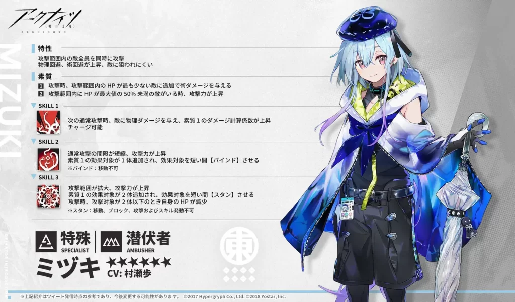 スマホゲーム『アークナイツ』に登場するキャラクター、ミヅキ。