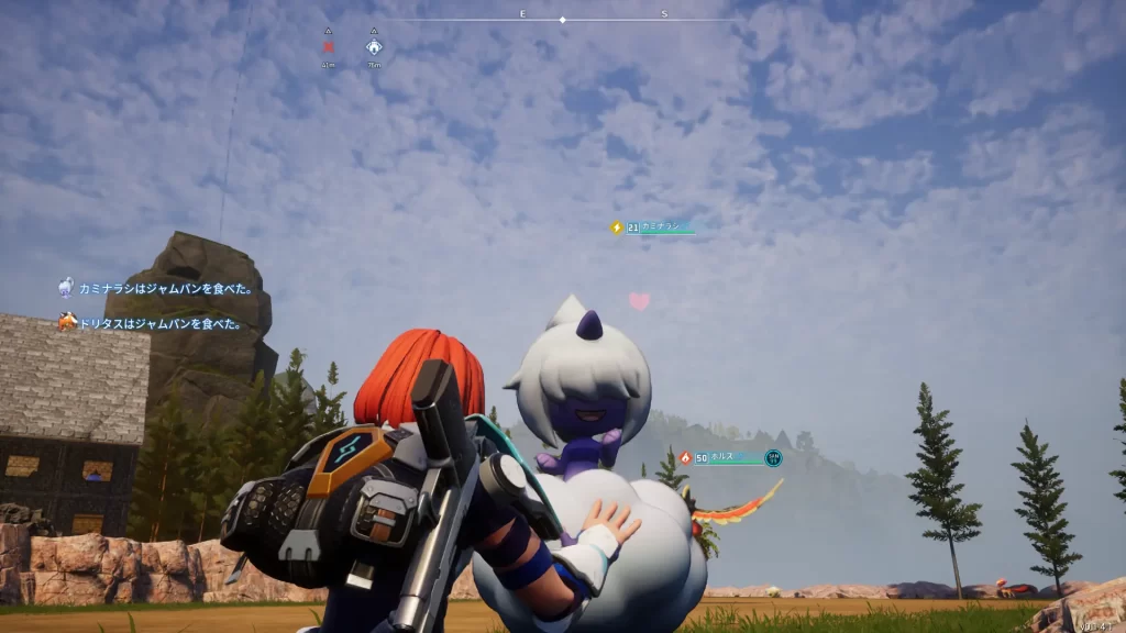 パルワールドでは、主人公がジャンプをすると場に出しているパルも連動する特徴があるのだが、こっちみて真似してるフェザーロがかわいい。