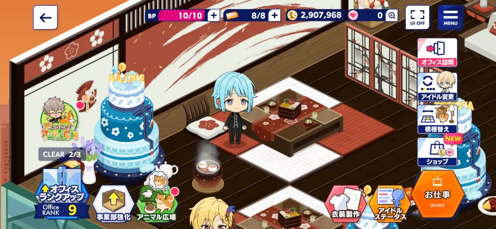 オフィスのミニキャラもかわよい。ここの衣装を作るのがなかなか大変で、未だに初期衣装とスーツぐらいしかない。