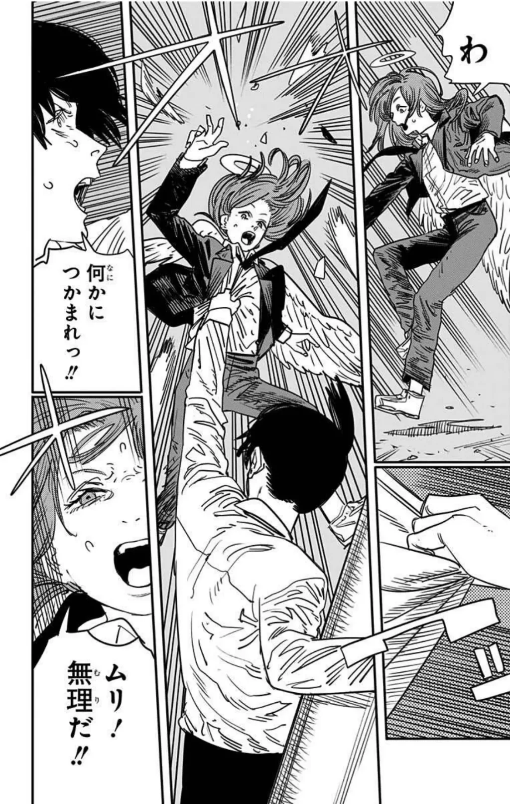 台風の悪魔に巻き込まれそうになった時。デンジ達が戦っている時のシーンの一部。アキが自身の寿命を削ってまで天使を助けるシーンはグッとくる。熱いです。