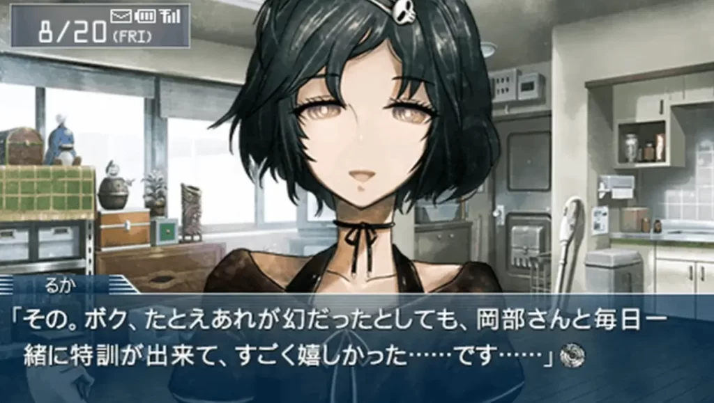 この世界線ではメインヒロインである紅莉栖が亡くなっており、他にも行方不明者が居たりと暗い雰囲気が強いのだが、るかがいるそれだけでも救われる。