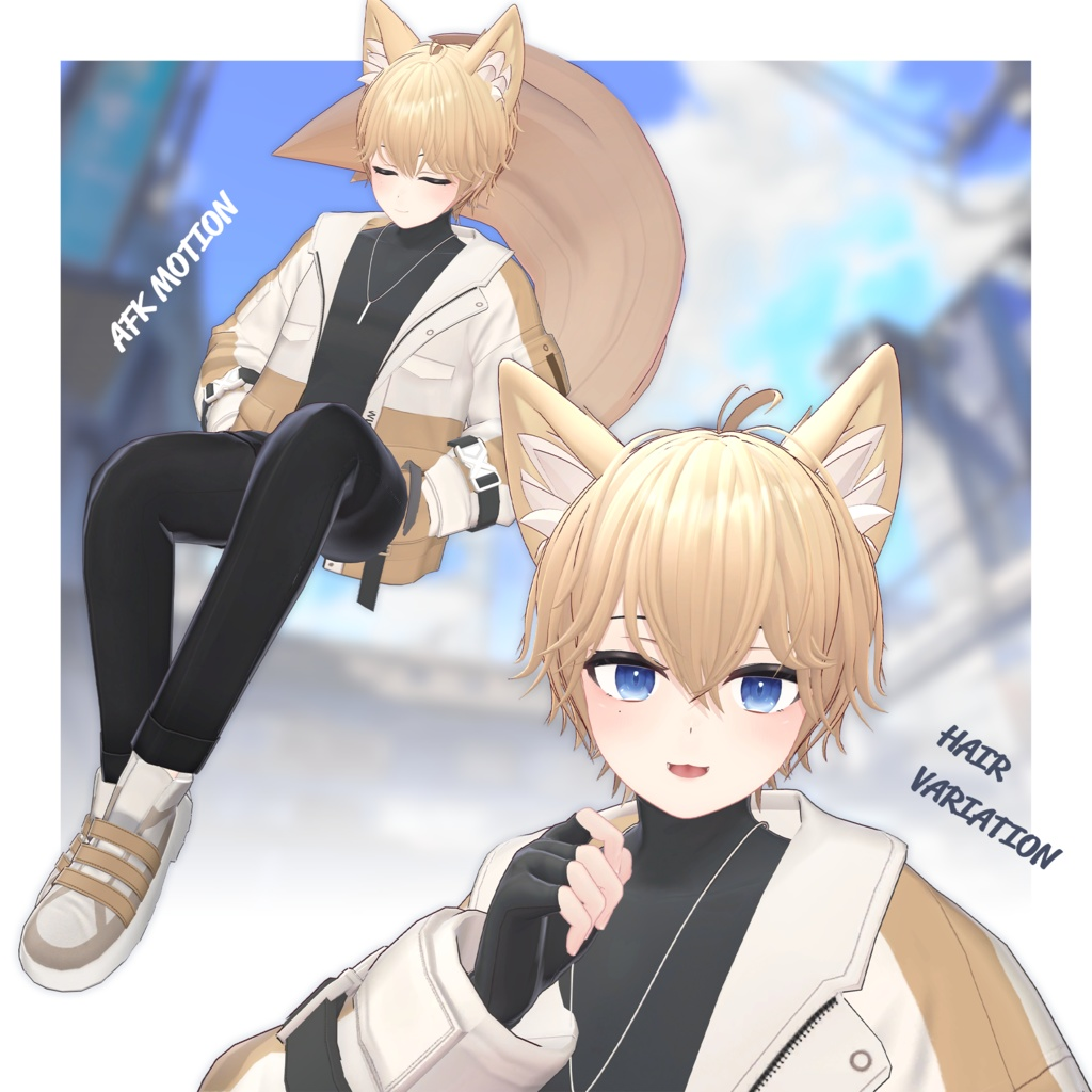 アンニュイな表情とふわふわ揺れる猫っ毛、しなやかですらっとしたスタイルが特徴の猫耳少年。