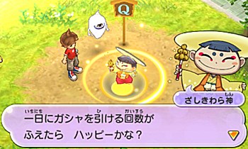 『妖怪ウォッチ2』にて、ストーリーでお世話になるざしきわら神です。神の施しで僕たちを癒やしてくれます。かわいい。