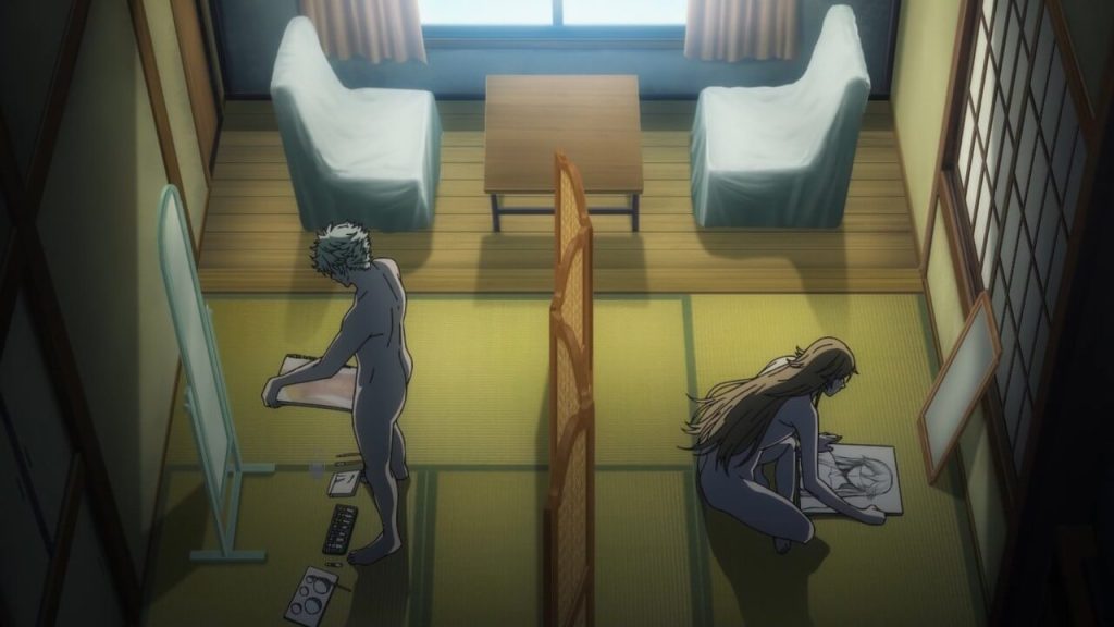 二人で海を見て、旅館に泊まり、自分自身に向き合うためにヌードデッサンを行うことに。