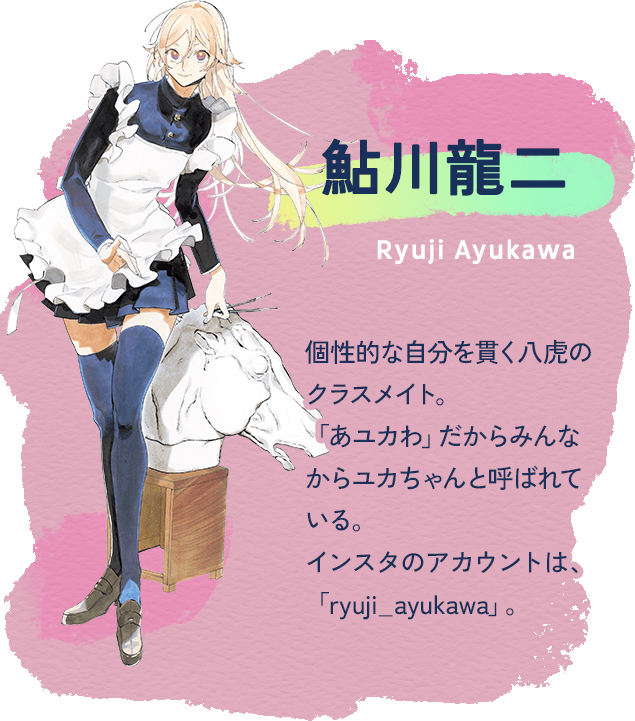 ゆかちゃんは、本作の主人公である八虎の悪友のような存在です。見た目や格好は女性的ですが、性別はれっきとした男性。